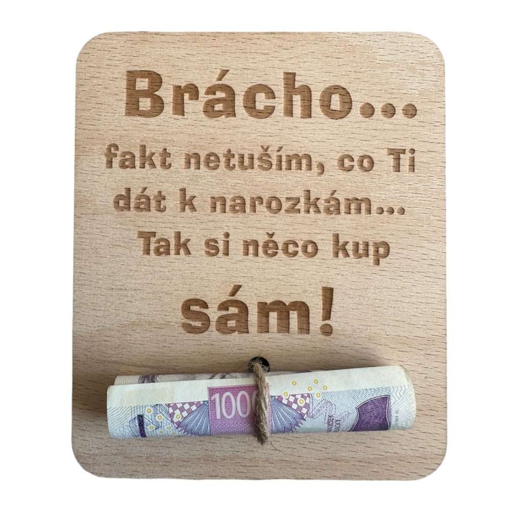 Elegantní dřevěná kartička s gravírovaným nápisem Brácho... fakt netuším, co Ti dát k narozeninám... Tak si to kup sám!