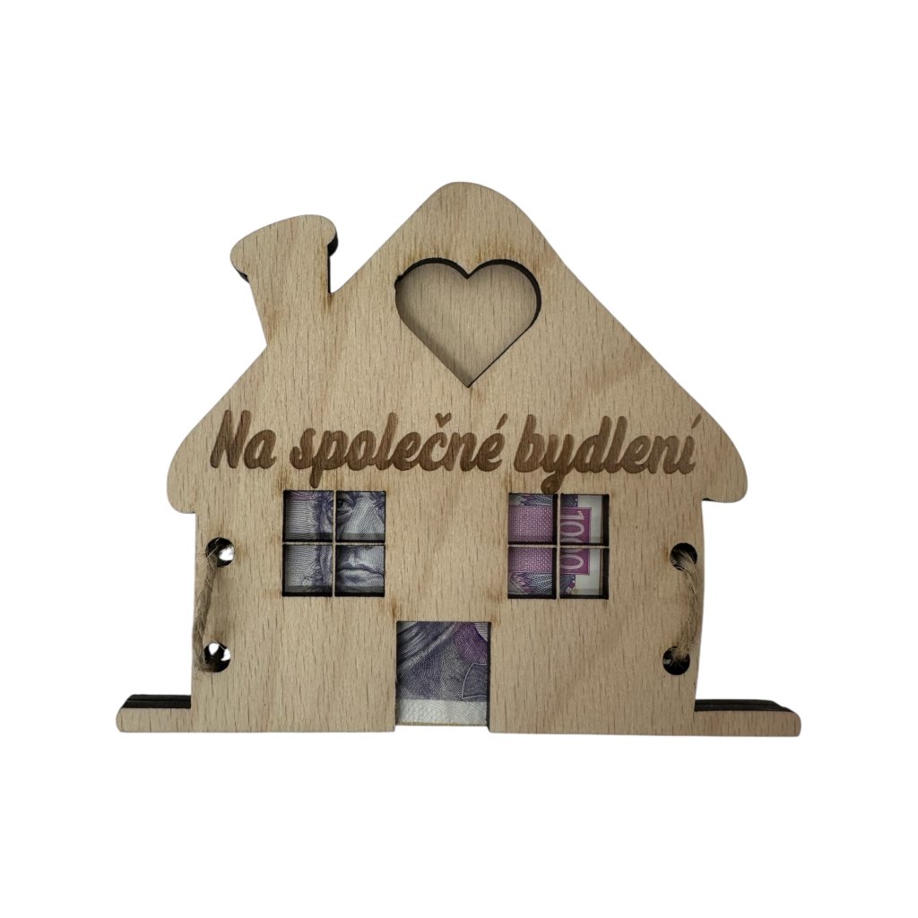 Hledáte originální způsob, jak darovat finanční příspěvek na společné bydlení? Tento stylový dřevěný domeček z bukové překližky s gravírovaným nápisem „Na společné bydlení“ je tím pravým!