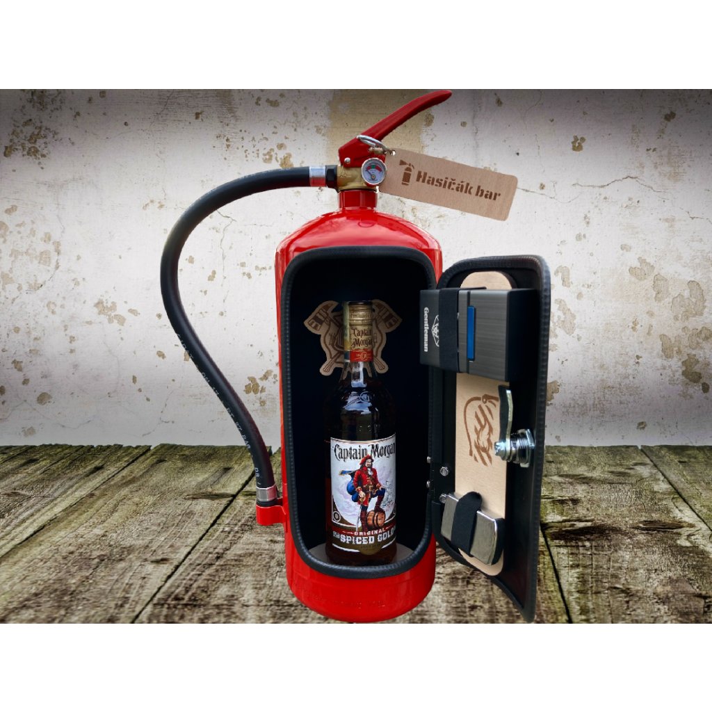 Náš ryze český produkt je ideálním dárkem pro muže sloužící jako jeho soukromý minibar, u kterého může relaxovat se sklenkou dobrého pití po náročném dni buď sám nebo s přáteli. Tento elegantní bar je zhotoven z hasícího přístroje, který mu spolu s dřevěným vnitřkem vdechl nezaměnitelný a stylový design.